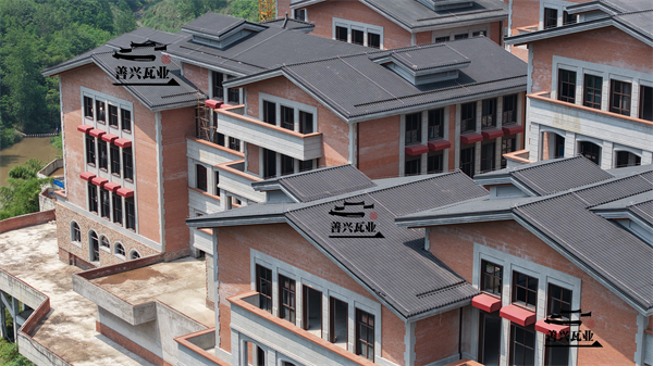 我廠生產(chǎn)的高分子復(fù)合礦物質(zhì)瓦系列產(chǎn)品傳承多種經(jīng)典瓦型風(fēng)格,以高耐候聚酯樹脂為基料,以高強(qiáng)玄武巖纖維為增強(qiáng)骨料,以多種復(fù)合保溫隔熱材料為填充料,經(jīng)高溫高壓一次性成型,是一種復(fù)合材料的環(huán)保型高品質(zhì)屋面瓦,產(chǎn)品集防水、保溫隔熱、裝飾于一體,具有多種優(yōu)于傳統(tǒng)瓦片的品質(zhì)優(yōu)勢,徹底克服了傳統(tǒng)瓦片體重、易碎、安裝繁瑣、隔熱防水效果差、后期維修成本高等固有缺陷,產(chǎn)品適合各種建筑屋面,特別適合于高檔中式別墅、中式四合院、古建工程、風(fēng)貌改造、商業(yè)街等中高端建筑,是新一代理想的高品質(zhì)屋面瓦。
